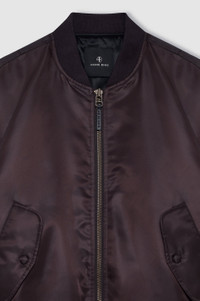 A traditional military-inspired bomber jacket made from a durable, slightly padded 100% polyester shell with a subtle sheen. - Polyester - Classic flight jacket details - Relaxed, oversized fit - Tonal interior lining - Two front flap pockets - Zipped sleeve pocket - Brass hardware - Ribbed knit trim at neck, cuffs, and Waist:band - Tonal branded leather patch at the back neck and coordinating zipper pull down the center FIT + MEASUREMENTS Relaxed, oversized fit: Take your true size. If a slightly smaller, more fitted silhouette is desired, we recommend taking one size down. Model is wearing a size S. Model Measurements: Height: 5'9", Bust: 30", Waist: 23", Hips: 34" Product Measurements (Size S): Length: 25", Bust: 51", Sleeve Length from Center Back: 33.5" MATERIAL + CARE 100% Polyester Machine wash Made in China