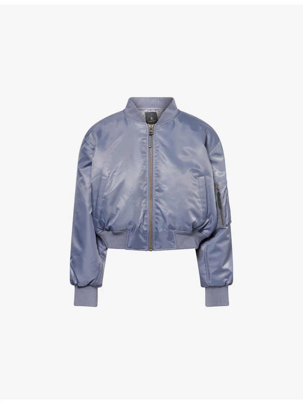 PRODUCT DETAILS - ANINE BING woven-shell bomber jacket - 100% polyester - Zip fastening - Regular fit, round flat collar, long sleeves, two welt pockets at front, zipped patch pocket at sleeve, embossed patch at back, two slip pockets at interior, ribbed trims, fully lined - Dry clean - True to size - Size medium: length 21in / 53cm - Model is 5ft 10in/1.78m and wears a size small - Midweight, non-stretch Ref: R04600251
