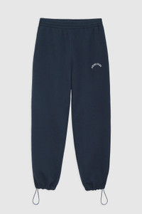 The Leone Jogger ANINE BING is an oversized sweatpant made from midweight 100% cotton fleece in navy. This style features white satin stitch embroidery at the wearer's left thigh, side seam pockets, an elasticated drawstring waistband, and inner bungee cording at the leg openings for a fully adjustable fit. Pair the Leone Jogger ANINE BING with the matching Lucy Hoodie ANINE BING to complete the look. The Leone Jogger is cut for an oversized fit. Take your true size. FIT + MEASUREMENTS The Leone Jogger is cut for an oversized fit. Take your true size. Model is wearing a size S. Model Measurements: Height: 5'9.5", Bust: 32", Waist: 23.5", Hips: 34.5" Product Measurements (Size S): Inseam: 29", Rise: 13", Waist: 15.3", Hip: 22.5", Leg Opening: 8" MATERIAL + CARE 100% Cotton Machine wash Made in Turkey