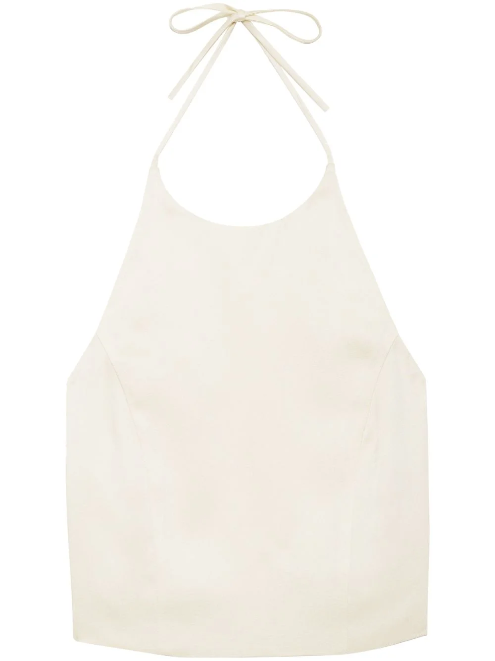 Leslie silk halterneck top cream white silk open back halterneck tie fastening sleeveless rear tie fastening cropped straight hem Imported Composition Silk 100% Washing instructions Dry Clean Only
