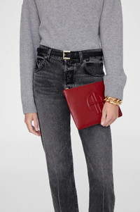 The Lili Pouch is a modern essential crafted from soft 100% pebbled leather with a matte finish. This day-to-night accessory features a fully lined cotton-twill interior and slip pocket, and finished with our signature embossed ANINE BING monogram at the center front. FIT + MEASUREMENTS Model Measurements: Height: 5'9.5", Bust: 32", Waist: 24.5", Hips: 33" Product Measurements: Length: 7.1", Width: 10.6" MATERIAL + CARE 100% Cow Leather Spot clean Made in Turkiye