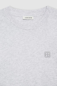 The Lili Tee Framed Monogram is an elevated basic made from a lightweight 100% cotton jersey fabrication in heather grey. This style features a tonal, framed ANINE BING monogram embroidered at the wearer's left chest. FIT + MEASUREMENTS The Lili Tee is cut for a boxy, relaxed fit inspired by the perfect vintage T-shirt. It features a slightly longer body than the Tiger Tee. Take your true size. Model is wearing a size S. Model Measurements: Height: 5'9", Bust: 32.5", Waist: 22.5", Hips: 34.5" Product Measurements (Size S): Length: 27.4", Bust: 20", Sleeve Length: 7.8" MATERIAL + CARE 100% Cotton Machine wash Made in Turkiye