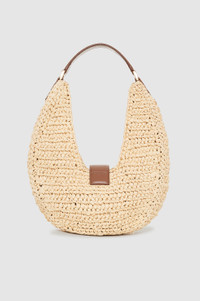A seasonal shoulder bag made from a woven seagrass material with cognac leather accents. This item is handmade using natural and artisanal materials. Avoid liquids and moisture to maintain the quality of your product. Do not wet. - Woven seagrass - Unlined - Leather tab with square magnetic closure - Gold framed monogram - Leather shoulder strap FIT + MEASUREMENTS Model Measurements: Height: 5'7.5", Bust: 32", Waist: 23.5", Hips: 34.5" Product Measurements: Length: 5.5", Width: 11.8", Handle Height: 8.1" MATERIAL + CARE 100% Cellulose Spot clean Made in Turkiye