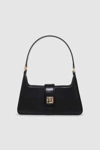 A timeless handbag crafted from smooth 100% spazzolato leather with a high-shine finish. The Lou Shoulder Bag features a leather tab and custom square magnetic closure, adorned with our signature framed ANINE BING monogram in exceptional gold hardware. Complete with a classic shoulder strap secured by custom square rings and a single interior slip pocket. FIT + MEASUREMENTS Model Measurements: Height: 5'9", Bust: 32.5", Waist: 22.5", Hips: 34.5" Product Measurements: Height: 6.7", Width: 8.1", Handle Height: 7.9" MATERIAL + CARE 100% Cow Leather Spot clean Made in Turkiye