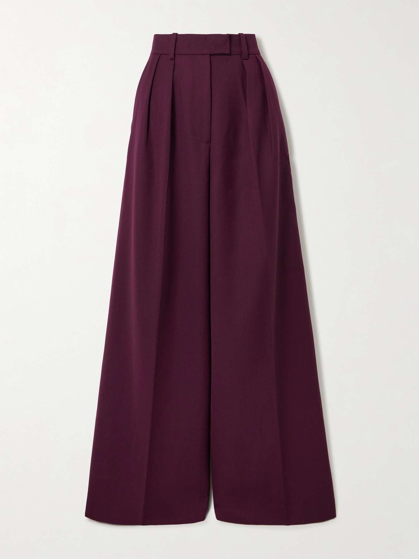 EDITORS'NOTES At once cool and elevated, Anine Bing's wide-leg 'Lou' pants are suited for a variety of occasions. They're woven with plenty of wool and have sharp double pleats at the high waist. Wear them with blazers and T-shirts alike. SIZE & FIT Model measurements: - Fits true to size, take your normal size - High-rise, cut for a wide-leg fit - Mid-weight, non-stretchy fabric - Model is 180cm/ 5’11” and is wearing a DK 34 - Bust: 80cm/ 31.5" - Waist: 65cm/ 25.5" - Hip: 89cm/ 35" DETAILS & CARE - Burgundy polyester and wool-blend - Concealed hook and zip fastening at front - 52% polyester, 48% wool; lining: 100% polyester - Machine wash