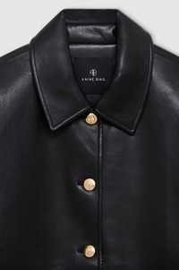 The Luca Jacket is made from fully lined, midweight 100% regenerated leather. This luxurious, everyday style features two patch pockets at the hips, dropped armholes, and side slits for effortless layering. Gold buttons with ANINE BING engraving decorate the center-front placket and each cuff for an elevated look. The Luca Jacket is cut for an oversized fit. We recommend taking one size down in this style if a closer fit is preferred. FIT + MEASUREMENTS The Luca Jacket is cut for an oversized fit. We recommend taking one size down in this style if a closer fit is preferred. Model is wearing a size S. Model Measurements: Height: 5'9.5", Bust: 32", Waist: 24.5", Hips: 33" Product Measurements (Size S): Length: 28.5", Bust: 47", Sleeve Length from Center Back: 33" MATERIAL + CARE 48% Leather, 25% Polyester, 27% Polyurethane Hand wash Made in China