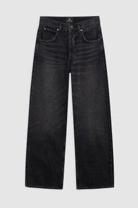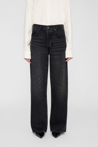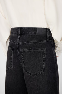 The Manon Jean features a baggy silhouette constructed from soft and lightweight rigid regenerative cotton denim without stretch in a faded black wash with hand sanding, marbling, and a faded tint throughout. - Regenerative cotton denim - High rise intended to be worn low on the hips - Button-fly closure - Baggy, wide leg - Full-length inseam - Clean-edge hem - Five-pocket design FIT + MEASUREMENTS High Rise Baggy Wide: Take your true size. If you are in between sizes, we recommend taking one size up in this style. Model is wearing a size 26. Model Measurements: Height 5′10", Bust 32", Waist 24", Hips 35" Product Measurements (Size 27): Inseam: 31", Rise: 12", Waist: 31", Hip: 42", Leg Opening: 21" MATERIAL + CARE 100% Cotton Machine wash separately Made in Turkey