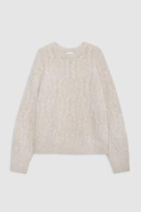 The Marisol Sweater is crafted from a soft and fuzzy alpaca blend yarn finished with an all-over cable knit stitch. This cozy knit features a high crew neckline, oversized body, and long sleeves. The Marisol Sweater is cut for an oversized fit. Take your true size. FIT + MEASUREMENTS The Marisol Sweater is cut for an oversized fit. Take your true size. Model is wearing a size S. Model Measurements: Height 5'9", Bust 30", Waist 23", Hips 34" Product Measurements (Size S): Length: 23", Bust: 23", Sleeve Length from Center Back: 32" MATERIAL + CARE 78% Alpaca, 19% Recycled Nylon, 3% Spandex Hand wash Made in China