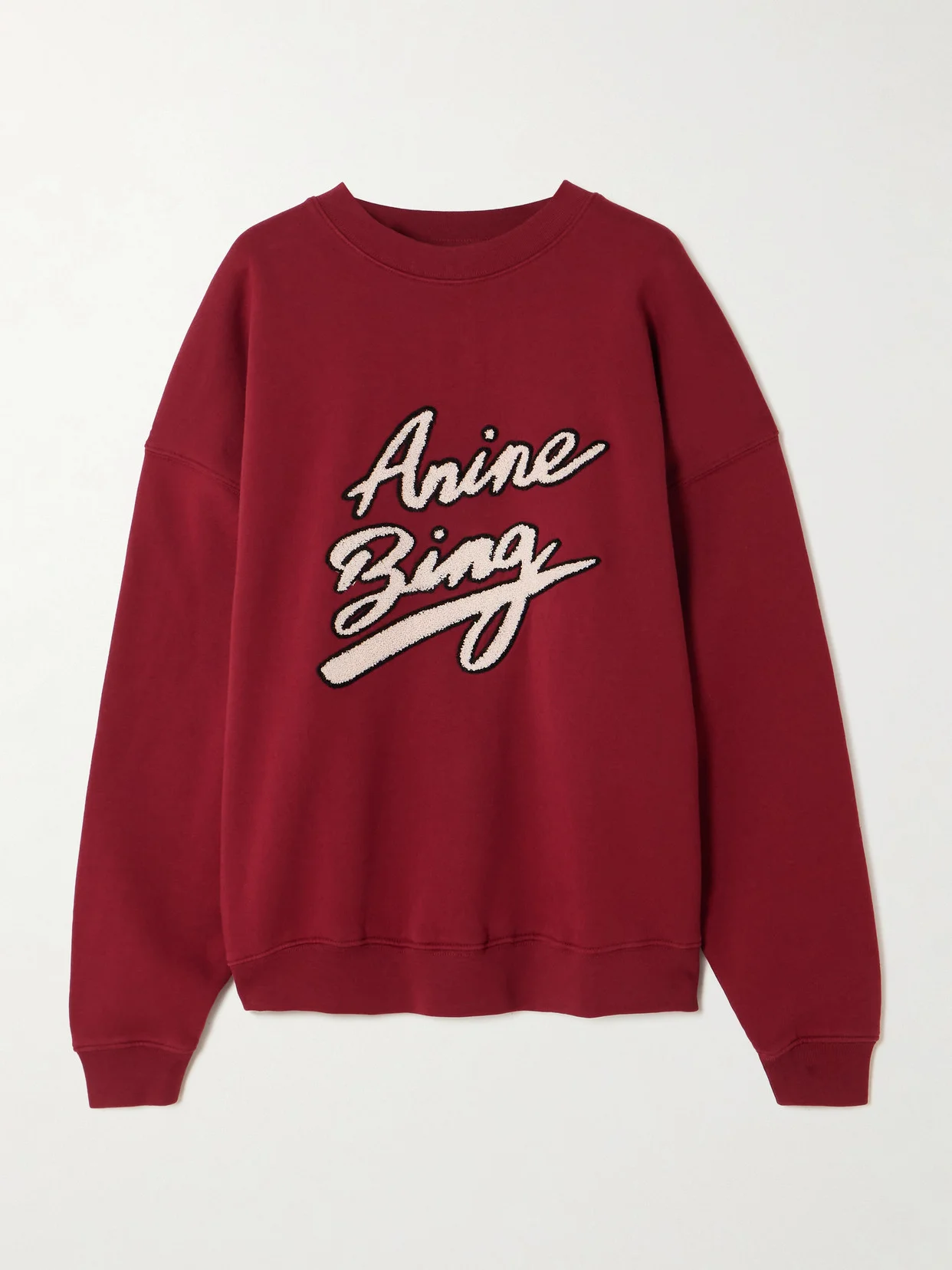 Anine Bing's signature 'Miles' sweatshirt is updated with a retro-inspired logo in fuzzy chenille. It's made from cotton-jersey with dropped shoulder seams to enhance its oversized fit. Pair yours with slim jeans for a polished off-duty look.