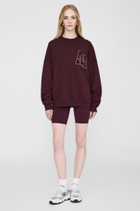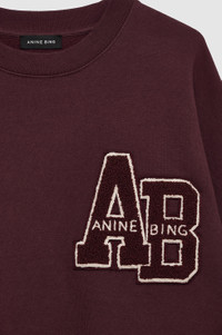 The Miles Oversized Sweatshirt Letterman is a crewneck pullover made from midweight 100% cotton fleece in a dark burgundy wash. This relaxed casual features a custom ANINE BING letterman chenille patch graphic at the chest in tonal burgundy and white. The Miles Oversized Sweatshirt is cut for a relaxed, oversized fit with a slightly wider and shorter body than the Tyler Sweatshirt. Please note: This style runs large. We recommend sizing down if a closer fit is preferred. FIT + MEASUREMENTS The Miles Oversized Sweatshirt is cut for a relaxed, oversized fit with a slightly wider and shorter body than the Tyler Sweatshirt. Please note: This style runs large. We recommend sizing down if a closer fit is preferred. Model is wearing a size S. Model Measurements: Height 5′10", Bust 32", Waist 24", Hips 35" Product Measurements (Size S): Length: 26.5", Bust: 26", Sleeve Length from Center Back: 36" MATERIAL + CARE 100% Cotton Machine wash separately Made in Turkey