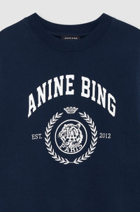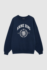 An oversized crewneck pullover made from midweight 100% cotton fleece in dark navy that's brushed on the inside. - Cotton fleece - Oversized fit - Ribbed cuffs and hem - Relaxed bottom band - Tonal chenille ANINE BING patch at front Please note: This item is individually handcrafted and will vary in color or appearance. FIT + MEASUREMENTS Relaxed, Oversized Fit: Take your true size. Model is wearing a size S. Model Measurements: Height: 5'8", Bust: 31", Waist: 25.5", Hips: 35.5" Product Measurements (Size S): Length: 25.8", Bust: 25", Sleeve Length from Center Back: 32.8" MATERIAL + CARE 100% Cotton Machine wash Made in Turkiye
