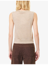 PRODUCT DETAILS - ANINE BING wool and cashmere top - 91% wool, 9% cashmere - Regular fit, round-neck, sleeveless, brand design plaque at front, all-over fine-knit pattern, ribbed trims - Hand wash cold - True to size - Model is 5ft 10in/1.78m and wears a size small - Lightweight, stretchy Ref: R04528440