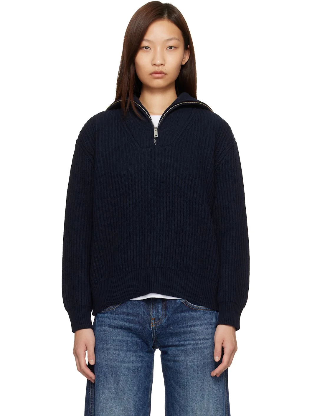 Rib-knit wool- and organic cotton-blend track jacket. · RWS-certified wool · Stand collar · Half-zip closure · Dropped shoulders Supplier color: Navy 40% wool, 40% organic cotton, 20% recycled nylon. Made in Turkey 261092F097004