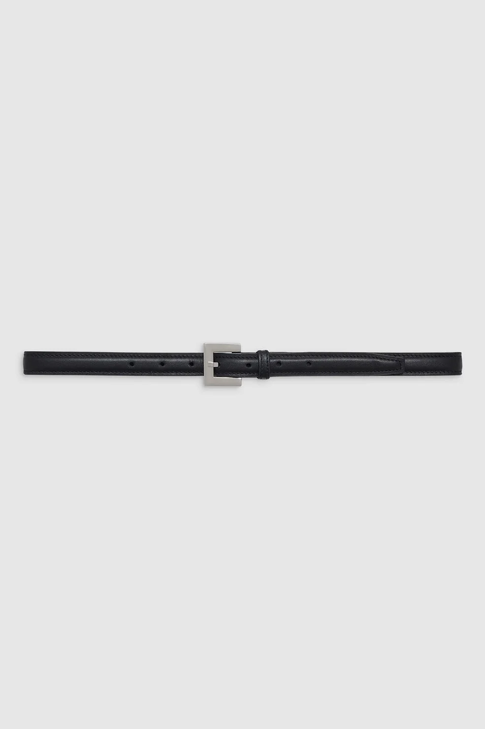 The Nicola Belt is crafted from black 100% leather with a slight sheen. This everyday style is slightly padded and features a custom square-shaped buckle in silver-tone hardware engraved with subtle ANINE BING branding. Take your true size. FIT + MEASUREMENTS Take your true size. Model is wearing a size XS/S. Model Measurements: Height: 5'9.5", Bust: 32", Waist: 24.5", Hips: 33" Product Measurements: XS/S: Length: 36.4", Width: 0.8" M/L: Length: 39.6", Width: 0.8" MATERIAL + CARE 100% Cow Leather Spot Clean Made in Turkiye