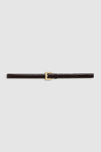 The everyday Nicola Belt is crafted from 100% leather stamped with croco-embossed texture with a high-shine finish. - Leather - Slightly padded strap - Square-shaped 14k gold-plated buckle - Engraved branding FIT + MEASUREMENTS Take your true size. Model is wearing a size XS/S. Model Measurements: Height: 5'9.5", Bust: 32", Waist: 24.5", Hips: 33" Product Measurements: XS/S: Length: 36.4", Width: 0.8" M/L: Length: 39.6", Width: 0.8" MATERIAL + CARE 100% Cow Leather Spot clean Made in Turkey