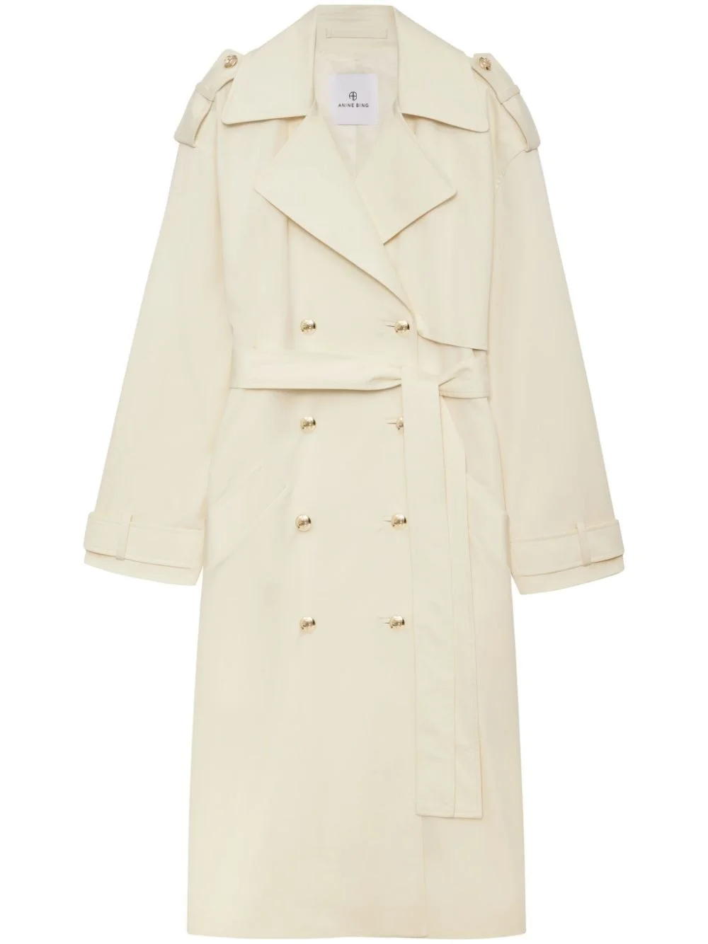 Layton button-detail oversize trench Highlights - Cream white - Stretch-cotton - Twill weave - Water-resistant - Gold-tone buttons - Wide notch lapels - Double-breasted button fastening - Epaulettes - Drop shoulder - Long sleeves - Belted cuffs - Slip pockets to the sides - Straight hem - Central rear vent Imported Composition Cotton 98%, Spandex/Elastane 2% SIZE & FIT Measurement SLEEVE LENGTH 21.65 in(55 cm) LENGTH 44.48 in(113 cm) WAIST 40.15 in(102 cm) BUST 42.51 in(108 cm) Shoulder Width 20.07 in(51 cm) Washing instructions Read Manufacturer Guidelines