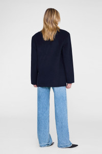 An ANINE BING signature in a new color. An unconstructed blazer made from a heavyweight, double-faced wool-cashmere blend, featuring a classic oversized fit, notched collar, and single-breasted closure with two buttons. - Double-faced wool-cashmere blend - Single-breasted, two-button closure - Notched collar - Padded shoulders - One welt pocket at the chest - Two inner welt pockets - Two flap pockets at the hips FIT + MEASUREMENTS Classic Oversized Fit: We recommend taking one to two sizes down if a closer fit is preferred. Model is wearing a size S. Model Measurements: Height: 5'10", Bust: 30", Waist: 24, Hips: 33.5" Product Measurements (Size S): Length: 30", Bust: 43", Sleeve Length from Center Back: 33.5" MATERIAL + CARE 90% Wool, 10% Cashmere Dry clean Made in China