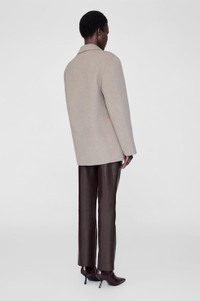 An unconstructed blazer made from a heavyweight, double-faced wool-cashmere blend, featuring a classic oversized fit, notched collar, and single-breasted closure with two buttons. - Double-faced wool-cashmere - Single-breasted, two-button closure - Notched collar - Padded shoulders - One welt pocket at the chest - Two inner welt pockets - Two flap pockets at the Hips: FIT + MEASUREMENTS Classic Oversized Fit: We recommend taking one to two sizes down if a closer fit is preferred. Model is wearing a size S. Model Measurements: Height: 5'9", Bust: 30", Waist: 23", Hips: 34" Product Measurements (Size S): Length: 30", Bust: 43", Sleeve Length from Center Back: 33.5" MATERIAL + CARE 90% Wool, 10% Cashmere Dry clean Made in China