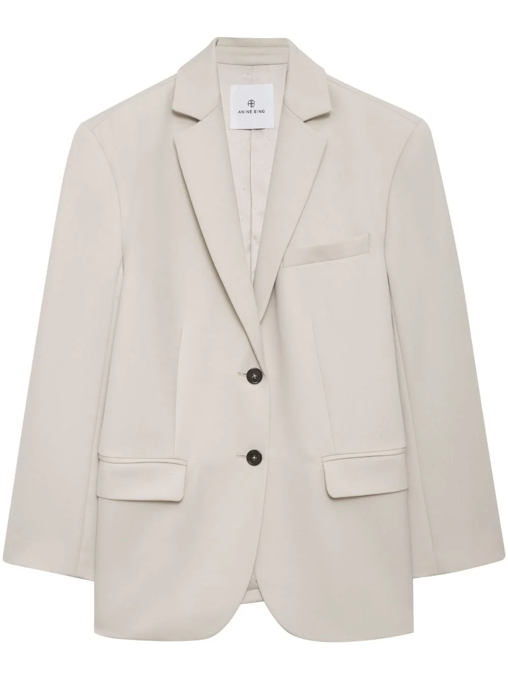 Quinn single-breasted blazer Cut for an oversize fit, ANINE BING's Quinn blazer is seen here in a timeless light grey hue with traditional tailoring elements such as notched lapels. Highlights - Light grey - Wool - Notched lapels - Front button fastening - Long sleeves - Chest welt pocket - Two front flap pockets Imported Composition Wool 100%