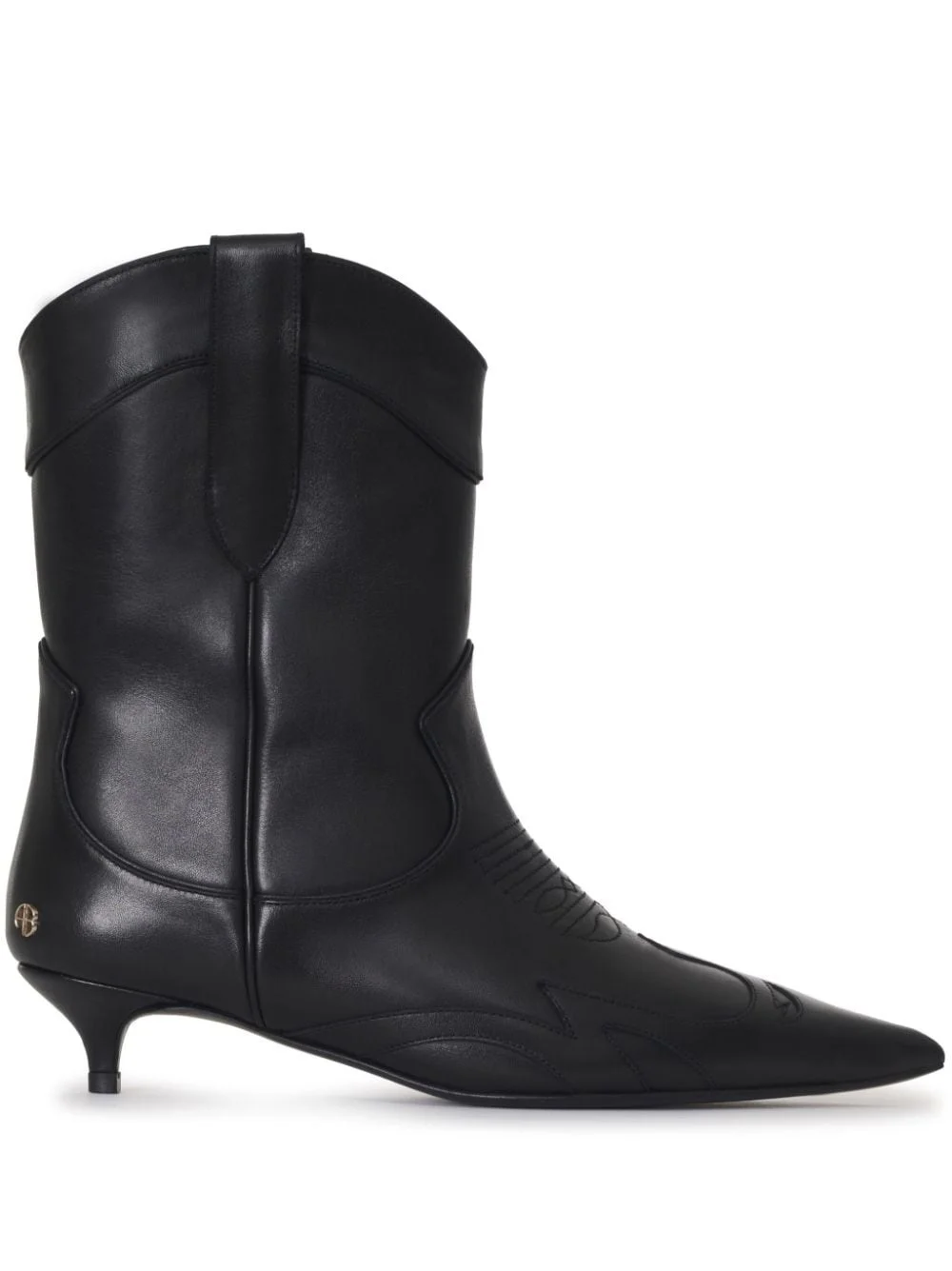 Rae logo-plaque boots Highlights - Black - Calf leather - Decorative stitching - Gold-tone logo plaque - Double pull-tab at the opening - Pointed toe - Slip-on style - Low heel - Leather sole Imported Composition Sole: Calf Leather 100% Outer: Calf Leather 100% Lining: Calf Leather 100%