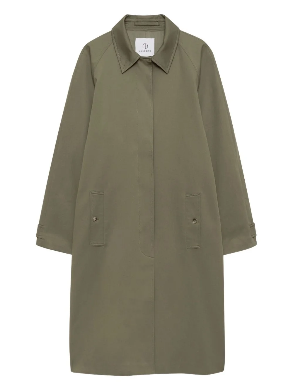 Randy trench coat Highlights - Olive green - Collar - Front button closures - Two patch pockets - Adjustable cuffs - Straight hem Imported Composition Cotton 96%, Elastane 4% Washing instructions Read Manufacturer Guidelines