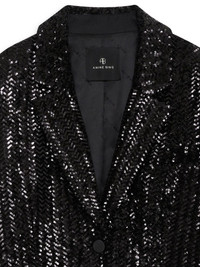 Sara blazer Highlights - Black - Front button fastening - Two side flap pockets - American rear vent - Sequin design Imported Composition Polyester 97%, Spandex/Elastane 3% Washing instructions Read Manufacturer Guidelines