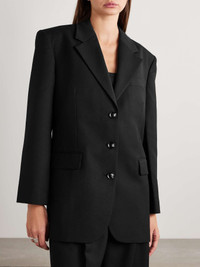 EDITORS'NOTES Anine Bing’s ‘Sara’ blazer is a timeless, versatile style you'll turn to for years. Woven with plenty of wool, it's cut for an oversized fit and has elegant notch lapels and flap pockets. Wear yours with everything from dresses to jeans. SIZE & FIT Model measurements: - Fits true to size, take your normal size - Intended for an oversized fit, cut to be worn very loose - Mid-weight, non-stretchy fabric - Model is 180cm/ 5’11” and is wearing a size XSmall - Bust: 81cm/ 32” - Waist: 62cm/ 24.5” - Hip: 88cm/ 34.5” DETAILS & CARE - Black polyester and wool-blend - Button fastenings through front - 52% polyester, 48% wool; lining: 55% polyester, 45% viscose - Dry clean