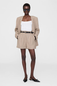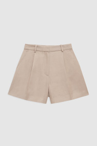 The Trent Short is a softly tailored bottom made from a lightweight, linen-viscose suiting fabrication in a soft shade of brown. - Viscose blend - Unlined - Relaxed fit - Low-to-mid rise - Front zip opening with a hook and bar closure - Functional belt loops - Pleat detailing - Front slanted pockets FIT + MEASUREMENTS Low-To-Mid Rise, Relaxed Fit: Take your true size. Model is wearing a size 32/2. Model Measurements: Height: 5'9", Bust: 30", Waist: 23", Hips: 34" Product Measurements (Size 36/6): Inseam: 4.5", Rise: 11.8", Waist: 30", Hip: 40", Leg Opening: 27.5" MATERIAL + CARE 60% Viscose, 22% Lyocell, 18% Linen Dry clean Made in Portugal