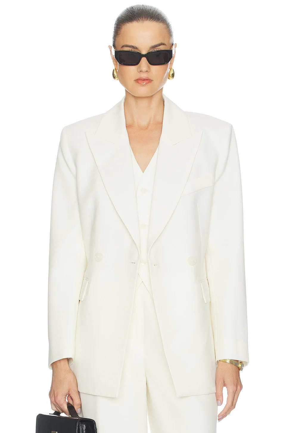 - Self: 52% polyester 48% wool Lining: 57% polyester 43% viscose - Made in China - Dry clean - Front button closure - Midweight canvas suiting fabric - Notched lapel collar - Padded shoulders - Revolve Style No. ANIN-WO246 - Manufacturer Style No. A-01-12170-WHT02