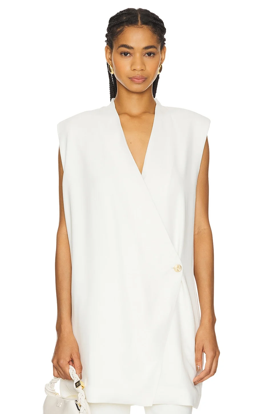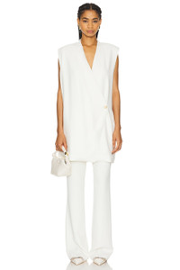 - Self: 96% viscose 4% spandex Lining: 95% polyester 5% spandex - Made in China - Dry clean only - Wrap button closure - Padded shoulders - Lightweight suiting fabric - Item not sold as a set - Revolve Style No. ANIN-WS336 - Manufacturer Style No. A-02-0482-IVY26