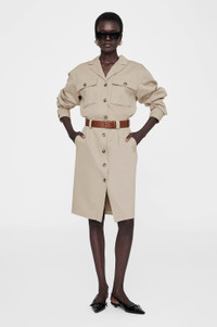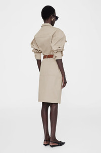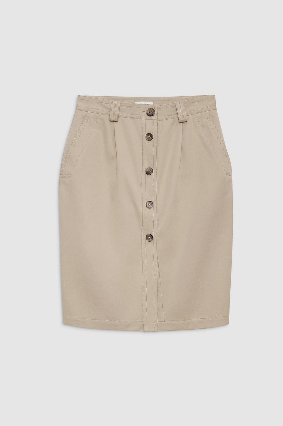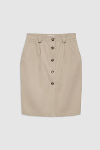 The knee-length Zaire Skirt is constructed from a light-to-midweight 100% cotton-twill fabrication with a smooth hand and slight sheen. It features a utilitarian construction finished with an exposed placket down the center front, double belt loops, side seam pockets, two patch pockets at the back, and top-stitch detailing throughout. The Zaire Skirt is cut for a high-waisted fit with a knee-length hemline. FIT + MEASUREMENTS The Zaire Skirt is cut for a high-waisted fit with a knee-length hemline. Model is wearing a size S. Model Measurements: Height: 5'9", Bust: 30", Waist: 23", Hips: 34" Product Measurements (Size S): Length: 23.5", Waist: 28.8", Hip: 38" MATERIAL + CARE 100% Cotton Dry clean Made in Portugal
