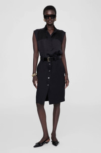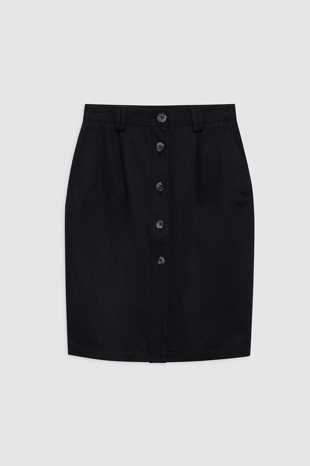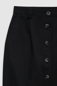 The knee-length Zaire Skirt is constructed from a light-to-midweight 100% cotton-twill fabrication with a smooth hand and slight sheen. It features a utilitarian construction finished with an exposed placket down the center front, double belt loops, side seam pockets, two patch pockets at the back, and top-stitch detailing throughout. The Zaire Skirt is cut for a high-waisted fit with a knee-length hemline. Take your true size. FIT + MEASUREMENTS The Zaire Skirt is cut for a high-waisted fit with a knee-length hemline. Take your true size. Model is wearing a size S. Model Measurements: Height: 5'9", Bust: 30", Waist: 23", Hips: 34" Product Measurements (Size S): Length: 23.5", Waist: 28.8", Hip: 38" MATERIAL + CARE 100% Cotton Dry clean Made in Portugal