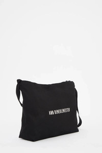 AD Large Shoulder Bag - Black - Heavy Cotton Canvas - Front Embroidered Logo - Knotted Shoulder Strap - Magnetic Press Stud Closure - 100% Cotton - Made in Italy