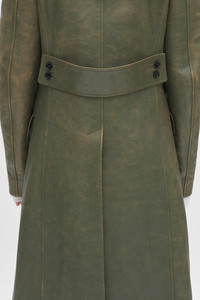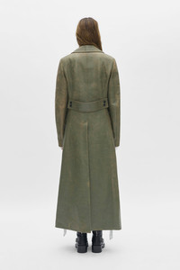 Agniet Double-Breasted Coat - sage/terracotta - Notched Collar -Removable signature grosgrain ribbon - Double-breasted - Button closure - Side flap pockets - Dropped shoulders - Back Martingale - Back Split - A-line silhouette - 100% Calfskin - Made in Italy Model wears italian size 40 Care To maintain the beauty and integrity of your purchase, we recommend treating it with care. Simple maintenance practices, such as gentle washing and proper storage, can effectively preserve the longevity of your favorites. We encourage you to refer to the care instructions included with each item, designed to help you keep your purchase in top condition. Design Our dedication to excellence extends beyond materials; it encompasses the artistry and craftsmanship illustrated in every piece we create.