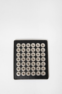 Alde Press Stud Card Holder in Soft Calfskin - Black - Soft Calfskin - Front Embossed Logo - 6 Card Slots - Side Slip Pocket - back decorative press studs - 100% Calfskin - Made in Italy