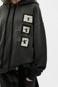 Anne Marie ''Doves'' High Comfort Hoodie - Black - Vintage Jersey - Distressed Details - Hood with Signature Grosgrain Drawstrings - Front ''Doves'' Printed Patches - Dropped Shoulders - Ribbed Hem and Cuffs - Loose Fit -100% Cotton - Made in Italy