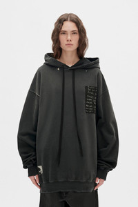 Anne Marie High Comfort Hoodie - Black - Vintage Jersey - Distressed Details - Hood with Signature Grosgrain Drawstrings - Front Printed Patches - Dropped Shoulders - Ribbed Hem and Cuffs - Loose Fit - 100% Cotton - Made in Portugal