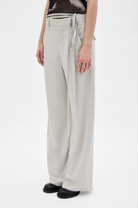 Anneke Comfort Tailored Trousers - Pearl - Viscose Calico - Belt Holes - Removable Signature Grosgrain Ribbon - Hook and Zip Closure - Side Pockets - Asymmetric Back Pockets - Wide Leg - Straight Fit - 100% Viscose - Made in Italy Model wears italian size 40 Care To maintain the beauty and integrity of your purchase, we recommend treating it with care. Simple maintenance practices, such as gentle washing and proper storage, can effectively preserve the longevity of your favorites. We encourage you to refer to the care instructions included with each item, designed to help you keep your purchase in top condition. Design Our dedication to excellence extends beyond materials; it encompasses the artistry and craftsmanship illustrated in every piece we create.