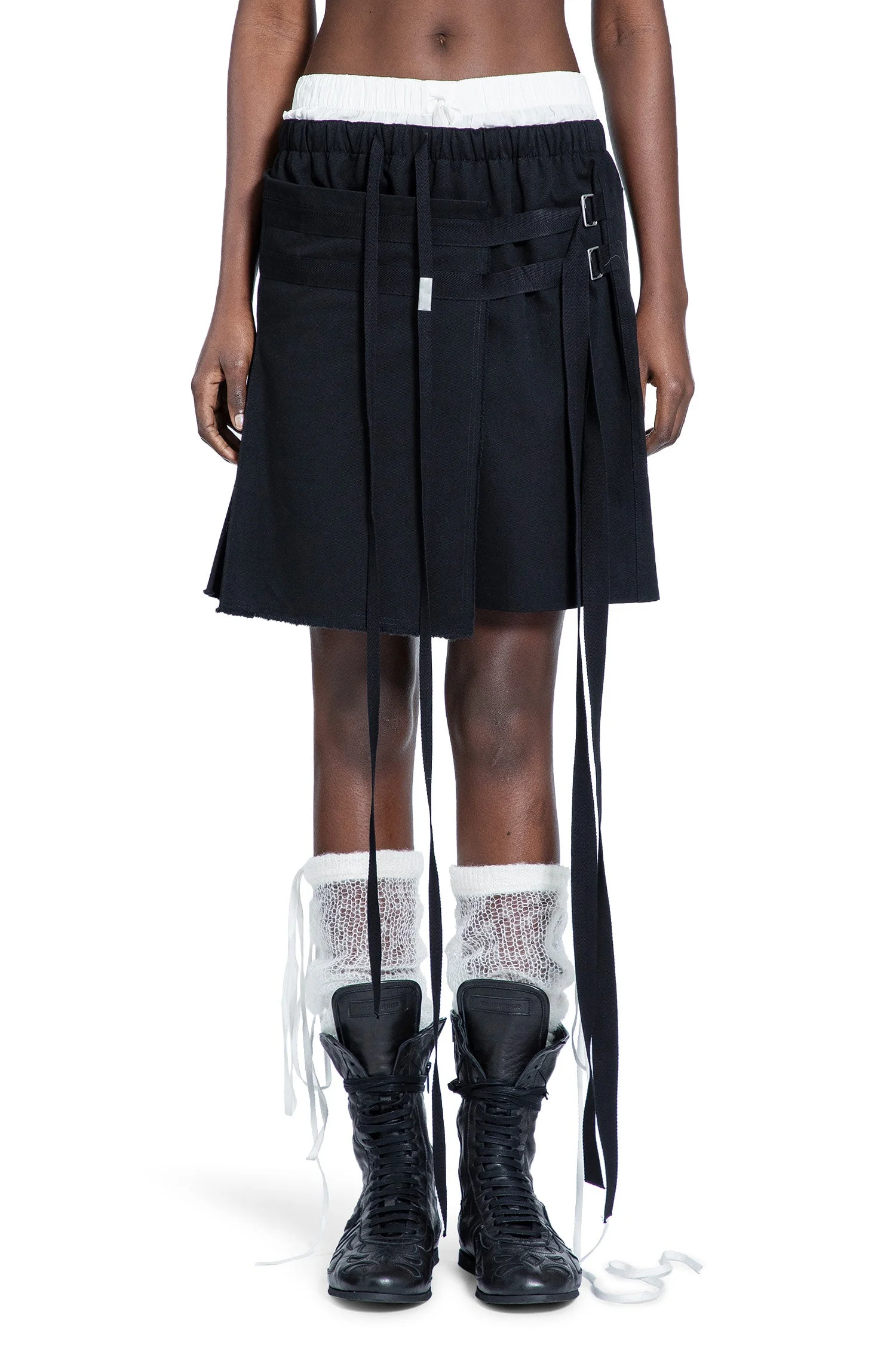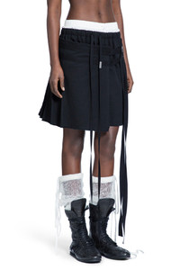 DESCRIPTION - Black - Washed Cotton Gabardine - Elastic waistband with signature grosgrain - drawstrings - Front apron with long signature grosgrain straps - Asymmetric pleated side panel - Back pocket - Raw-edge hem DETAILS - Made in: Italy - Composition: 100% Cotton - Model code: B0013662FA696 099 - Item ID: 9785666339158