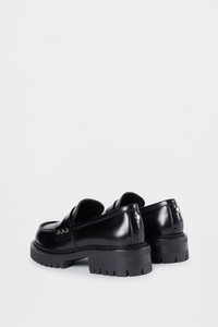 Baldur Penny Loafers - Black - Semi-Gloss Leather - Front and Back Signature Rivets - Front Apron - Cleated Rubber Sole - 100% Calf Leather - Made in Italy Ann Demeulemeester shoes embody the essence of luxury and comfort. The generously wide fit is a design choice aimed at ensuring a comfortable wear. For those who prefer a snugger fit, we recommend using an insole. Crafted from the highest quality leather, it is natural for the shoes to feel stiff initially. By wearing and walking in them, they will perfectly mold to the shape of your feet, offering unparalleled comfort. The fit of this item is regular. Consider to purchase your usual size. Care To maintain the beauty and integrity of your purchase, we recommend treating it with care. Simple maintenance practices, such as gentle washing and proper storage, can effectively preserve the longevity of your favorites. We encourage you to refer to the care instructions included with each item, designed to help you keep your purchase in top condition. Design Our dedication to excellence extends beyond materials; it encompasses the artistry and craftsmanship illustrated in every piece we create.