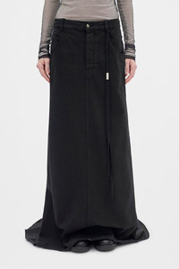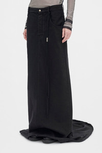 Goele 5 Pocket Denim Comfort Skirt - Black - Cotton Denim - Belt Holes - Removable Signature Grosgrain Ribbon - Button Closure - 5 Pockets - Back Draped Insert - Frayed Raw-Edge Hem - Floor Length - 100% Cotton - Made in Italy The model wears italian size 40 The fit of this item is regular. Consider to purchase your usual size. Care To maintain the beauty and integrity of your purchase, we recommend treating it with care. Simple maintenance practices, such as gentle washing and proper storage, can effectively preserve the longevity of your favorites. We encourage you to refer to the care instructions included with each item, designed to help you keep your purchase in top condition. Design Our dedication to excellence extends beyond materials; it encompasses the artistry and craftsmanship illustrated in every piece we create.