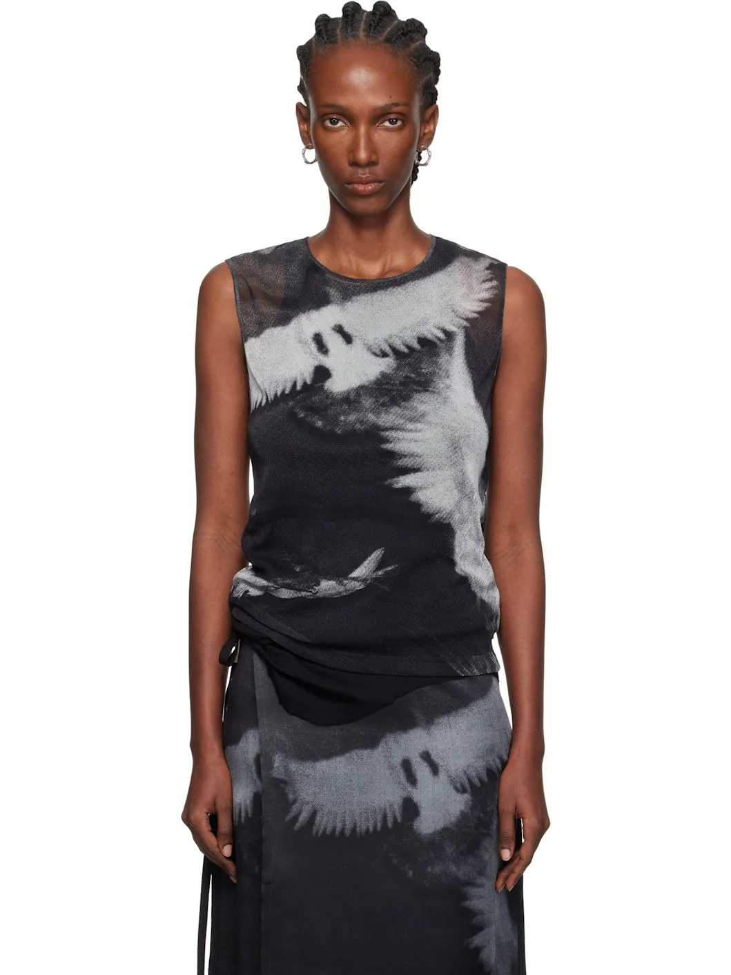 Sheer nylon mesh tank top. · Graphics printed throughout · Round neck Supplier color: Black/Grey 100% polyamide. Made in Italy 252378F111000