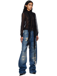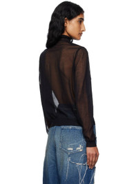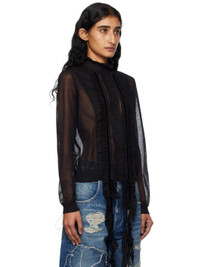Sheer knit cotton-blend blouse. · Rib-knit stand collar, hem, and cuffs · Button closure · Ruffled poplin trim at front · Extended poplin and lace trim at hem Supplier color: Black Body: 82% cotton, 18% polyamide. Trim: 100% cotton. Made in Italy 251378F107004