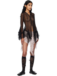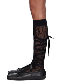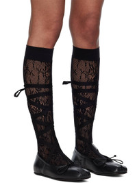 Buffed leather ballerina flats. · Gathering at square toe · Bow accent at vamp · Wraparound self-tie ankle straps · Rivet at heel · Buffed leather lining · Leather sole with rubber injection Supplier color: Black Upper: leather. Sole: leather, rubber. Made in Italy 251378F118002
