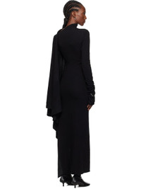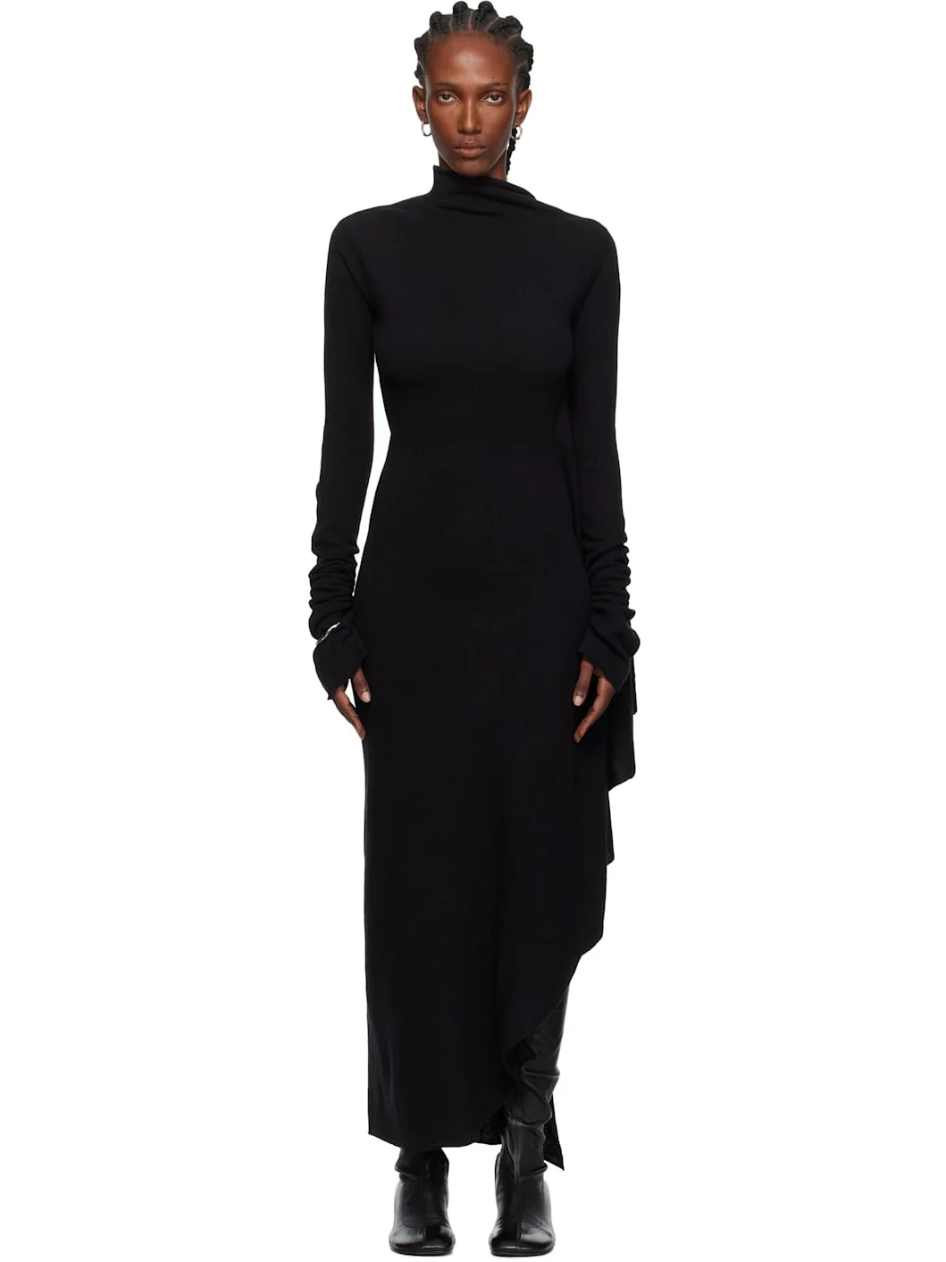 Felted knit wool maxi dress. · Draping throughout · Wraparound scarf-style panel at cowl neck · Asymmetrical hem · Slit at side seam · Elongated flared cuffs Supplier color: Black 100% wool. Made in Italy 252378F055000
