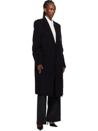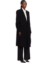 Virgin wool- and cashmere-blend melton coat. · Notched lapel · Detachable grosgrain ribbon with logo plaque at lapel · Button closure · Flap pockets at waist · Padded shoulders · Central vent at back hem · Welt pockets at interior · Plain-woven cotton lining Supplier color: Black Body: 90% virgin wool, 10% cashmere. Lining 1: 100% cotton. Lining 2: 52% viscose, 48% cotton. Made in Italy 252378F059001