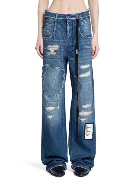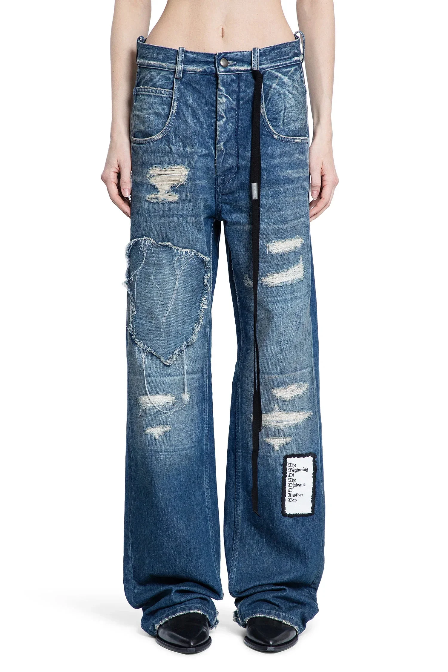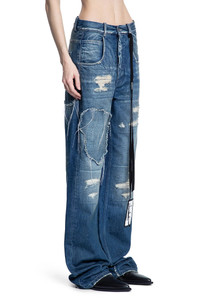 DESCRIPTION - Vintage blue - Distressed denim - Destroyed and mended details - Belt holes - Button closure - 5 pockets - Baggy fit - Floor length DETAILS - Made in: Italy - Composition: 100% Cotton - Model code: B0010197FA631 053 - Item ID: 9480130920790