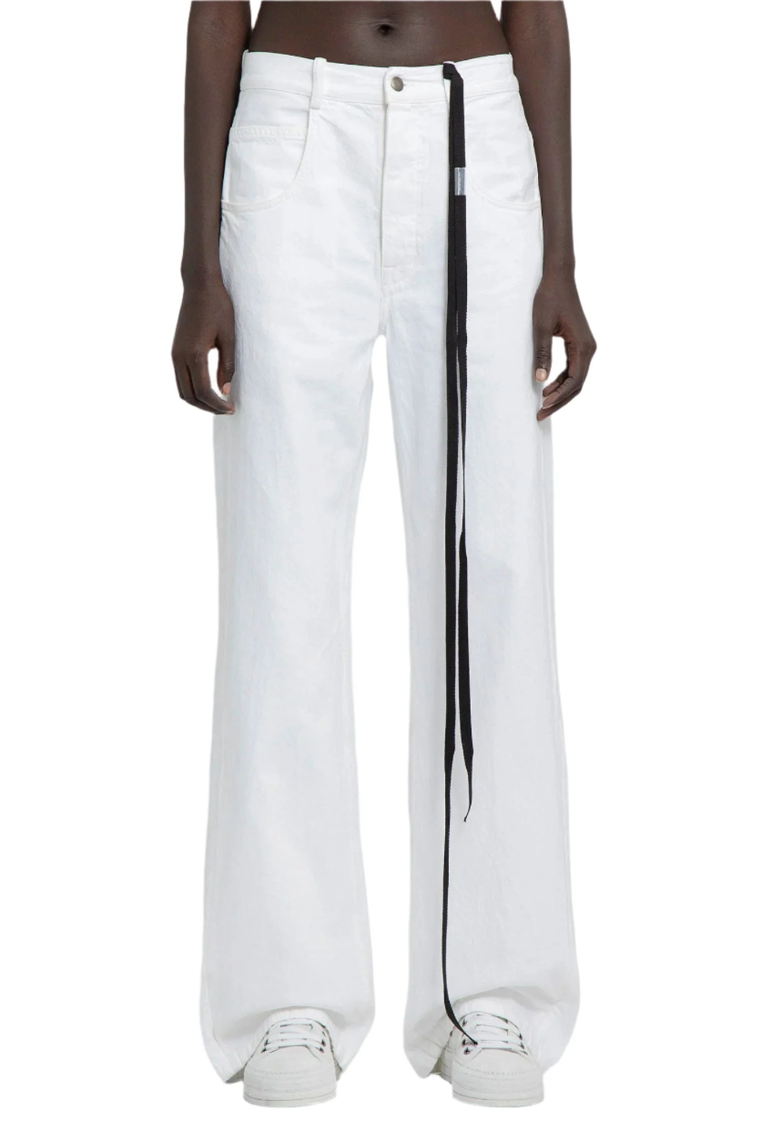 DESCRIPTION - White - Belt Holes - Removable Ribbon With Engraved Logo Plaque - Button Closure - 5 Pockets - Regular Fit - The fit of this item is regular. You may consider purchasing your usual size. DETAILS - Made in: Italy - Composition: 100% Cotton - Model code: B0010197FA038 001 - Item ID: 7427398467762 SIZE & FIT The model wears an Italian size 38, which is deliberately oversized for style purposes. For a regular fit, please consider choosing a size down. Model height 180 cm bust 80 cm waist 64 cm hips 86 cm