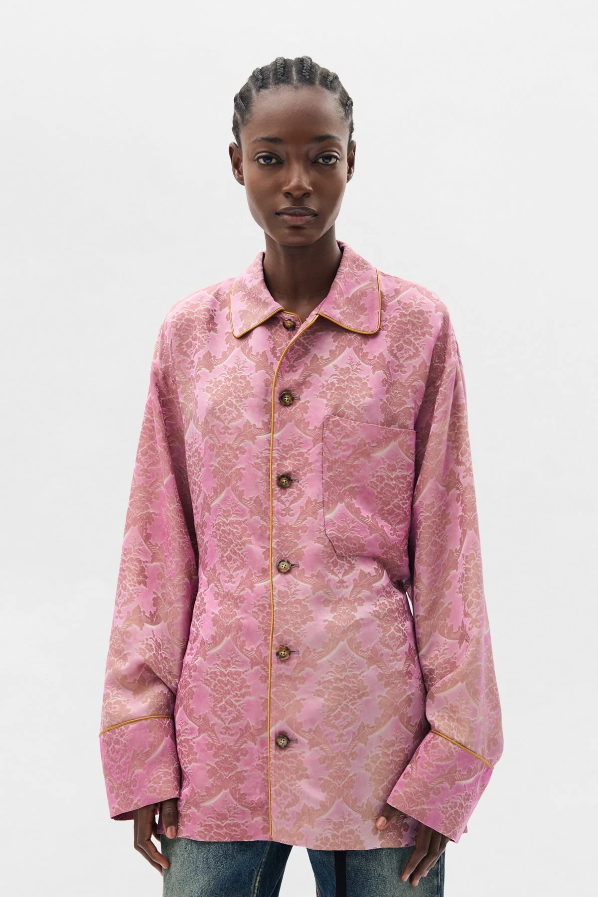 Coby Relaxed Lounge Shirt - Bloom Pink - Viscose Cuprammonium Blend - Subtle Jacquard Design - Contrast Piping - Button Front Closure - Single Chest Pocket - Relaxed Fit - 51% Viscose 49% Cuprammonium - Made in Italy Model wears italian size S Care To maintain the beauty and integrity of your purchase, we recommend treating it with care. Simple maintenance practices, such as gentle washing and proper storage, can effectively preserve the longevity of your favorites. We encourage you to refer to the care instructions included with each item, designed to help you keep your purchase in top condition. Design Our dedication to excellence extends beyond materials; it encompasses the artistry and craftsmanship illustrated in every piece we create.