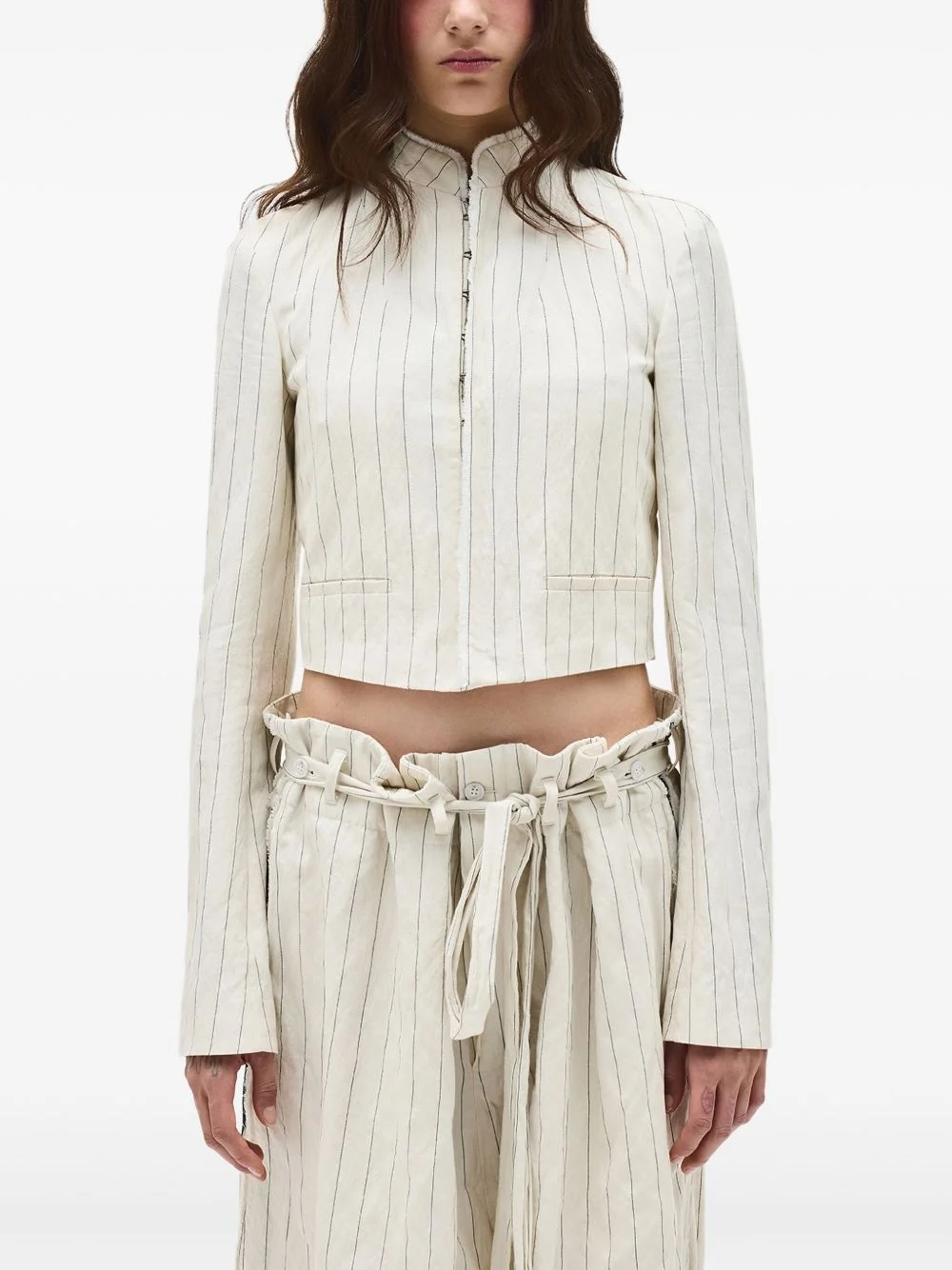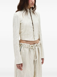 cotton jacket Highlights - Light beige - Front hook and eye fastening - Vertical stripe pattern - Two front jetted pockets - Long sleeves Made in Italy Composition Cotton 100% Washing instructions Read Manufacturer Guidelines